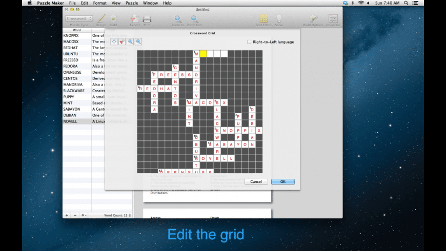 Crossword puzzle software mac. Each day many newspapers provide their crossword puzzles online. Make puzzles automatically from your words export crosswords to the web and much more. What is Puzzle Maker for Mac.